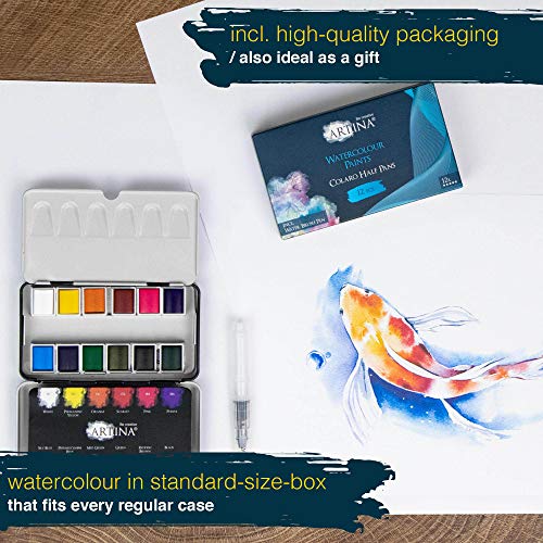 Specification: Artina Colaro Waterverf Set Aquarelverf 12 napjes Kunstenaars Verf in Metalen Doos met Waterverf Penselen