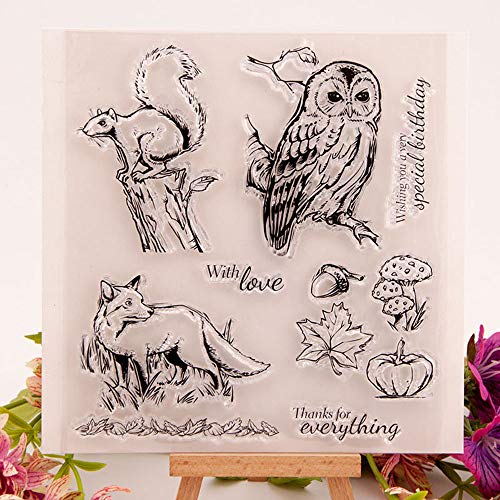 Specification: Bedankt Denken aan U Eekhoorn Noten Uil Wolf Paddestoel Clear Stempels voor Kaarten Maken Decoratie en DIY Scrapbooking