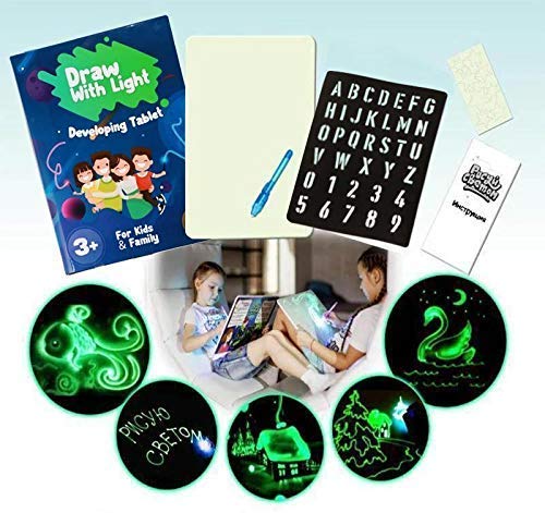 bestbeans Licht magie schilderbord + uv-lamp + geheime pen – pedagogisch oplichtend tekenbord in het donker lichten…
