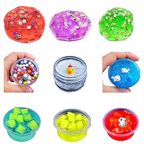 Veel kleuren met accessoireset: elke geschenkdoos is gedetailleerd, bevat 24 kleuren kristallen slijm, 48 flessen glitterglas, 6 kleuren luchtdroog klei, 10 speelgoedbekers, 10 kleine speelgoed, 4 verpakkingen fruitschijven, 3 stuks slijmgereedschap, 2 stuks kleurrijke schuimballen en een praktische driftfles. De kleur van het slim en de accessoires is zeer verschillend, wat aangenaam verrassend is.
