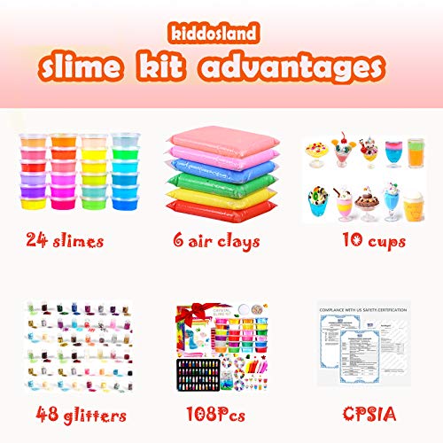 Specification: Doe-het-zelf slijm Fluffy Kit – 24 kleuren slijmkit voor meisjes en jongens, speelgoed met 48 glitterpoeder, heldere…