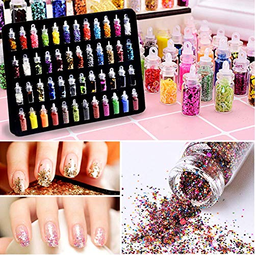 – 48 flessen glitterpoeder.