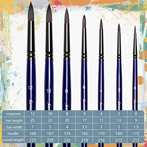 Specification: Fuumuui Penseelset schilderen voor aquarel, 7 stuks kunstenaarskwasten, sable haar voor aquarel, acrylverf, gouacheolie…
