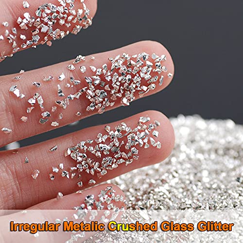 JEMESI 100g Crushed Glass, 2-4mm Reflective Crushed Metallic Glass Glitter Gem Beads Chips voor DIY Hars Nagel…