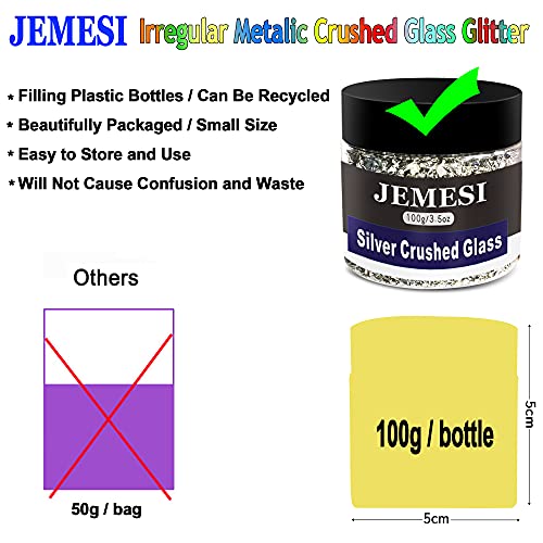Specification: JEMESI 100g Crushed Glass, 2-4mm Reflective Crushed Metallic Glass Glitter Gem Beads Chips voor DIY Hars Nagel…