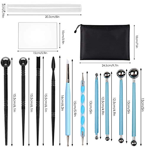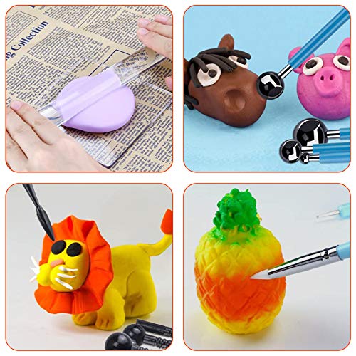 Clay Sculpting Tools Set: Inclusief 5 stks plastic dotting tools + 5 stks rubberen tip pennen + 4 stks bal stylus tool + 4 stks modellering gereedschappen aardewerk gereedschap + 1 st Acryl klei roller + 1 st Acryl sheet+ 40 stks Polymeer Klei Cutters en 1 st draagtas.