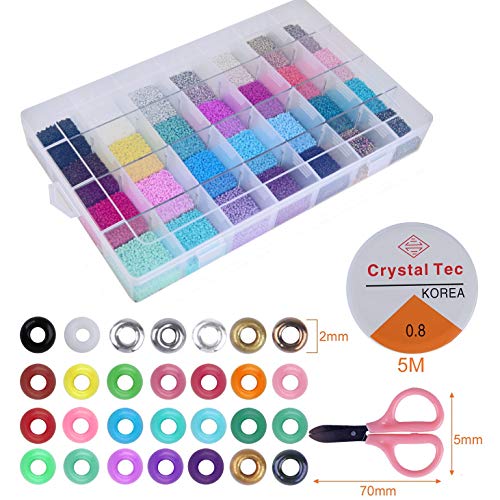 【AFMETING & INHOUD VAN DE VERPAKKING】- Elke kleine zaadkraal is ongeveer 3 mm in diameter met een gaatje van 0,5 mm. Het pakket bevat 28000 x kralen, 20 x karabijnsluiting, 25 x ringen, 1 x opbergdoos, 1 x rol elastisch kristal koord, 1 x schaar.