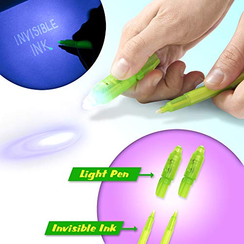 – Met de onzichtbare inkt kunnen kinderen ‘geheime’ berichten schrijven op elk oppervlak, die alleen kunnen worden gelezen door ze te verlichten met het LED-licht.