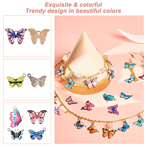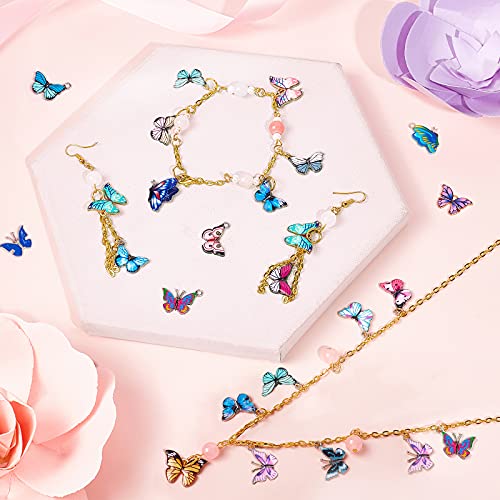 Grote hoeveelheid: pakket bevat 80 stuks kleurrijke metalen vlinderbedels met 40 stuks gouden open springringen en 40 stuks zilveren springringen, goede combinatie genoeg om aan uw doe-het-zelf eisen te voldoen.
