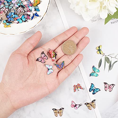 PandaHall 80 STK. 40 stijlen vlinder bedrukte legering emaille bedelhangers met 80 stuks goud/zilver 8mm 18 gauge…
