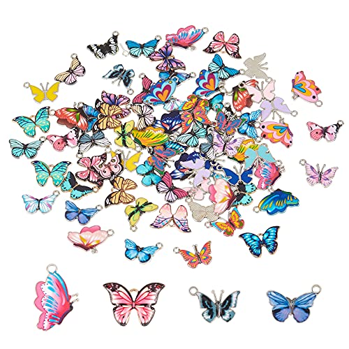 Specification: PandaHall 80 STK. 40 stijlen vlinder bedrukte legering emaille bedelhangers met 80 stuks goud/zilver 8mm 18 gauge…