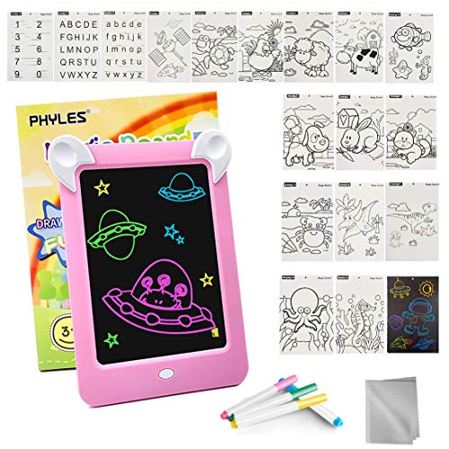 Specification: PHYLES Magic Pad, LED Zaubertafel Kids 3-12 jaar, enthält 19 Magic Board (Buchstaben, Zahlen, Muster), 4 Zeichenstifte…