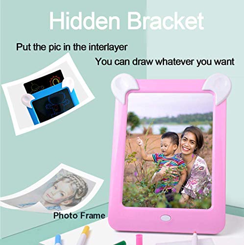 Herbruikbaar en dubbel gebruik MAGIC BOARD — Onze magische tekentafel zowel als speelgoedbord, maar ook als decoratieve fotolijst. Er zullen verschillende kleuren licht op de tekentablet zijn, waardoor de graffiti levendiger en interessanter wordt. Elke keer dat u op de knop drukt, verandert u de kleur van het licht. En veeg gewoon schoon wanneer je opnieuw moet tekenen en schrijven, het is veilig en leuk voor kinderen.