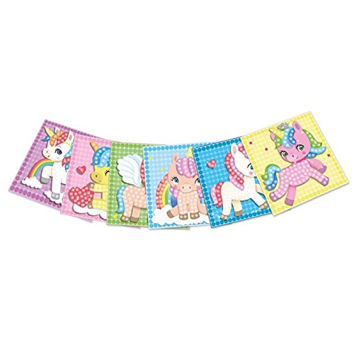evat zes bedrukte kaarten met betoverende eenhoorn – motieven voor het versieren en vormgeven