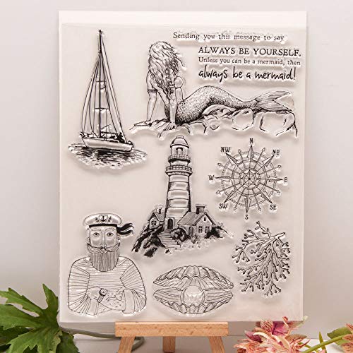 Specification: Wees altijd zelf Zeemeermin Sailor Zeilboot Kompas Vuurtoren Seashell Clear Stempels voor Kaarten Maken Decoratie en DIY…
