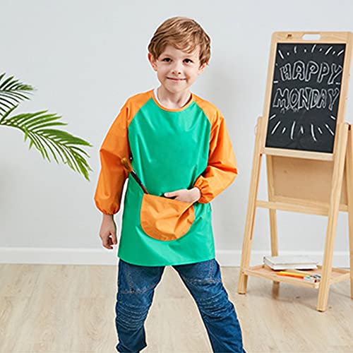 Lange mouwen en voorzak: kinderen schorten met lange mouwen zijn ontworpen met elastische manchetten om een betere bescherming te bieden tegen kleuren voor de kleding en armen. Bovendien biedt het ruime voorvak ruimte voor schildergereedschap of andere voorwerpen, wat zeer praktisch is.
